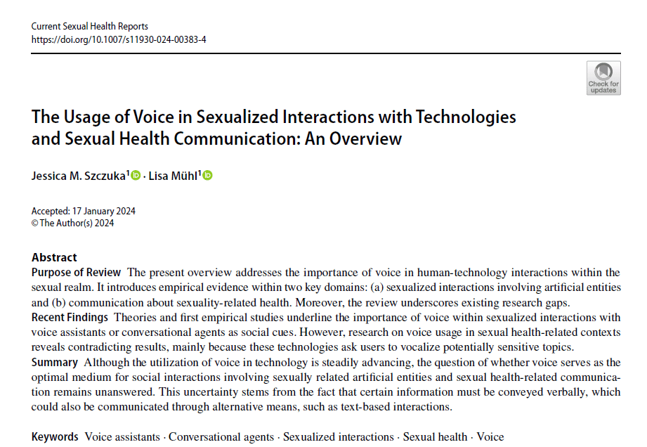 Find more in Jessicas & Lisas latest publication in Current Sexual Health Reports : The Usage of Voice in Sexualized Interactions with Technologies and Sexual Health Communication: An Overview